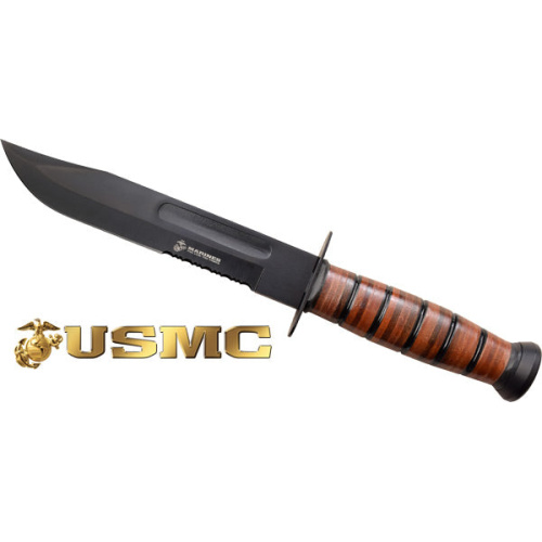 Mc usmc 7" bowie blade w/ leather sheath